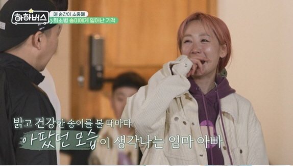 이날 하하가족은 어느 때보다 풍성한 저녁식사를 즐겼다. 하하가 정성껏 구운 돼지고기 자갈구이부터, 이이경이 만든 돈코츠 라면은 드소송의 입맛을 완전히 사로잡았다. 송이는 이이경표 돈코츠 라면에 "천상에 빠지는 맛"이라며 행복해했고, 하하가족 공식 '소식키즈' 소울이조차 라면을 폭풍 흡입해 하하를 놀라게 했다. 또한 소울이와 송이는 맛있는 음식을 만들어준 이이경에게 "삼촌 그냥 요리사 해요"라고 극찬해 훈훈한 미소를 자아냈다. 이이경이 준비한 즉석 팝콘까지 즐기며 파티의 흥이 한껏 오른 가운데 이들은 막간 댄스파티를 벌이기도 했다. 특히 한껏 신이 난 송이는 '하하버스' 주제곡에 맞춰 콩콩 뛰는 깜찍한 댄스로 '하하댄스 챌린지 타임'을 불러왔다. 이때 송이의 모습을 물끄러미 바라보던 하하는 이이경을 향해 "송이가 원래 일어나지도 못했던 애다. 그래서 (이렇게 춤추는 모습을 볼 때마다) 미치는 거다. 이런 게 재밌지만 (뭉클하다)"라고 말하며 속내를 꺼내 놔 먹먹함을 자아냈다.