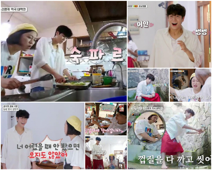 이후 김숙은 한국의 명절 대표 음식인 떡국을 끓이는 작업에 돌입했고, 이때 정동원에게 "마늘 까서 씻어 오라"는 미션을 던졌다. 난생처음 마늘을 까게 된 정동원은 껍질도 벗기지 않고 마늘을 수돗물에 씻는가 하면, 끊임없이 "동원아!"라고 외치는 김숙의 채근에 마늘을 통째로 벽에 문대면서 끝내 울상을 지었다.