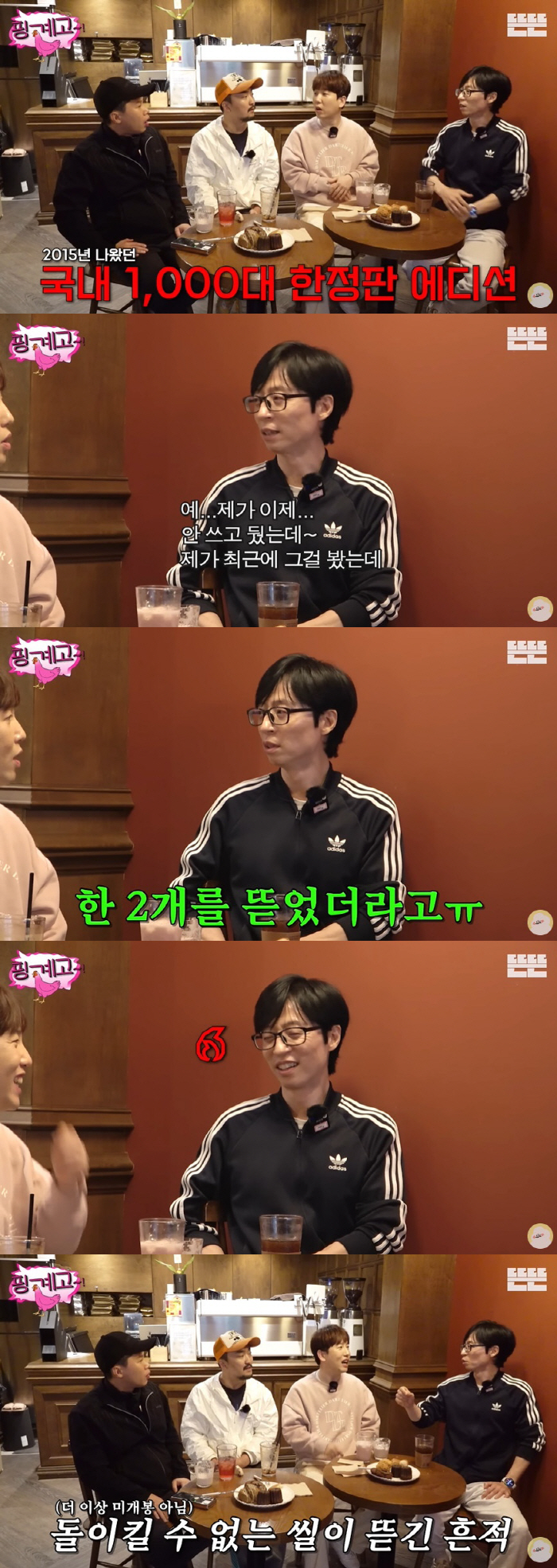 네 사람은 각자 모으는 수집품들에 대해 이야기했다. 유병재는 "SNL' 극한직업이라는 코너를 할 때 입었던 패딩 조끼가 있다. 그게 캐릭터 착장처럼 돼서 자주 입다 보니 너무 해지고 못 쓰게 됐다. 그래서 나눔 해드리는 이벤트에 기부했다"고 밝혔다.