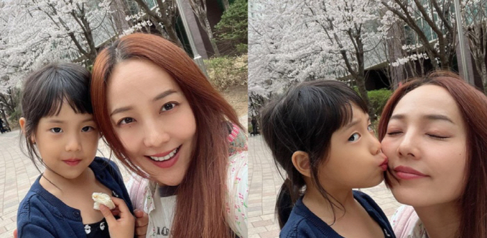 공개된 사진 속 유진은 딸과 봄날의 벚꽃을 배경으로 포즈를 취하고 있는 모습. 특히 딸은 유진의 볼에 뽀뽀를 하며 한껏 애교를 피고 있어 시선을 모은다. 모녀의 다정한 투샷이 훈훈함을 자아낸다.