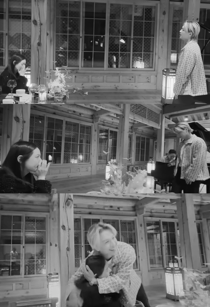 태양은 신곡 중 '나의 마음에'를 작곡가의 피아노 연주에 맞춰 라이브로 열창했다. 민효린을 보며 진심을 다해 부르는 모습에 아내 민효린은 눈물을 흘리며 들었다. 현장에 참석한 지인들은 두 사람의 아름다운 모습을 카메라에 담으며 빛나는 순간을 소장했다.