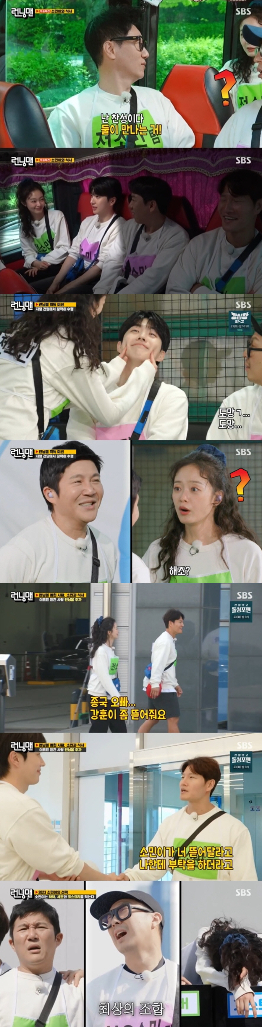 지난 21일 방송된 SBS '런닝맨'은 지난주에 이어 '2023 소민이의 선택' 레이스가 공개됐다. 전소민은 게스트로 등장한 조세호와 강훈에 대해 '극과 극' 반응을 보였다. 전소민은 "멤버들에게 없는 따뜻함이 있다"며 강훈에게 적극적인 플러팅을 시도했고 멤버들도 "만나는 거 찬성한다"며 강훈의 의지와는 상관없는 지지 의사로 웃음을 자아냈다.
