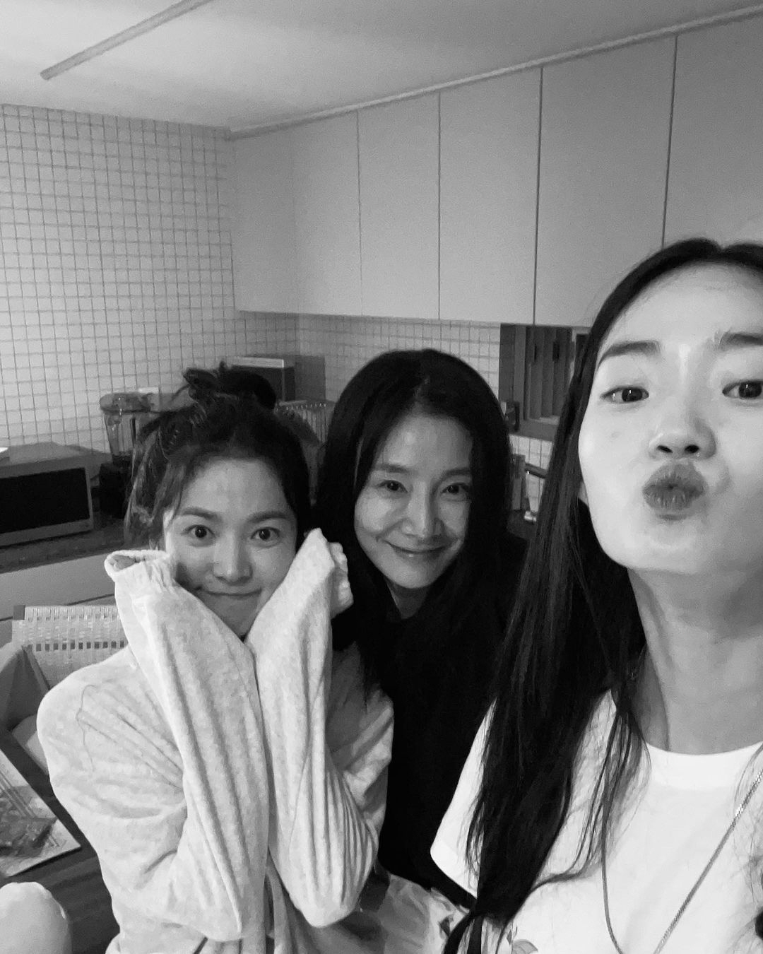 사진 속에는 송혜교와 절친들과의 즐거운 시간이 담겨있다. 배우 박효주와 최희서, 모델 신현지와 홈파티 중인 듯한 송혜교. 편안한 스타일의 의상을 착용, 여기에 화장기 없는 민낯을 자랑하며 애교 가득한 표정을 짓고 있어 눈길을 끈다. 또한 옹기종기 모여 얼굴을 맞댄 채 사진을 촬영, 드라마 '지금 헤어지는 중입니다' 등을 통해 만나 현재까지 인연을 이어오고 있는 이들의 우정에 시선이 쏠렸다.