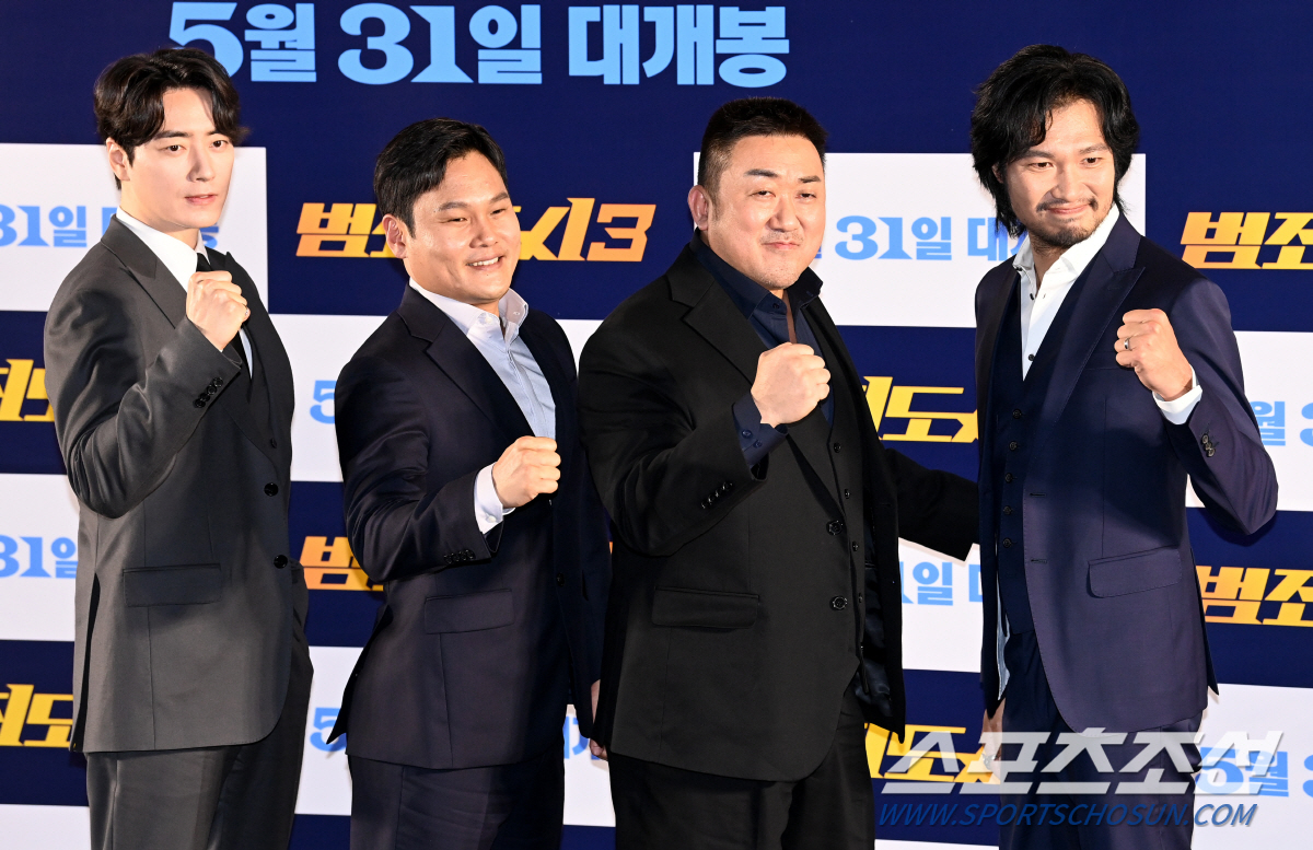 또한 마동석은 '범죄도시' 시리즈에 쏟은 남다른 열정을 고백하기도 했다. 그는 "총 8편까지 기획을 했지만 관객 분들이 원한다면 계속 할 수 있을 것 같다"며 "어렸을 때부터 운동을 해서 부상으로 수술까지 했다. 연골도 없고 아킬레스건도 50% 밖에 없는 상태다. 몸 안에 여기저기 안 부러진 곳이 없어서 지금도 계속 재활을 하면서 액션을 촬영하고 있다. 가장 중요한 건 관객들이 원해야 한다는 거다. 몸 관리를 열심히 해서 잘 만들어보고 싶다"고 각별한 애정을 드러냈다.