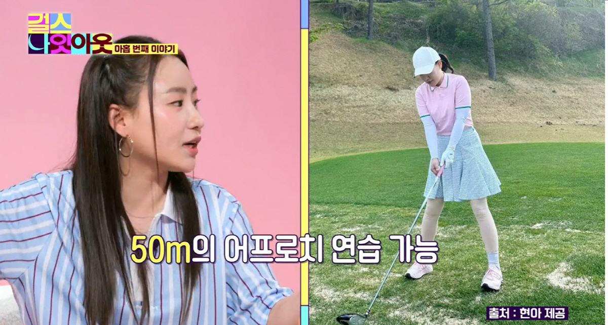 조현아는 지난 22일 방송된 Mnet '걸스 나잇 아웃'에 출연, 집에 대해 이야기했다. 남양주시에 거주 중인 조현아는 집의 장점에 대해 "뒷마당에 골프 연습할 수 있는 공간이 있다. 50m 어프로치 가능하다. 그린까지 구비했다"고 밝혔다.