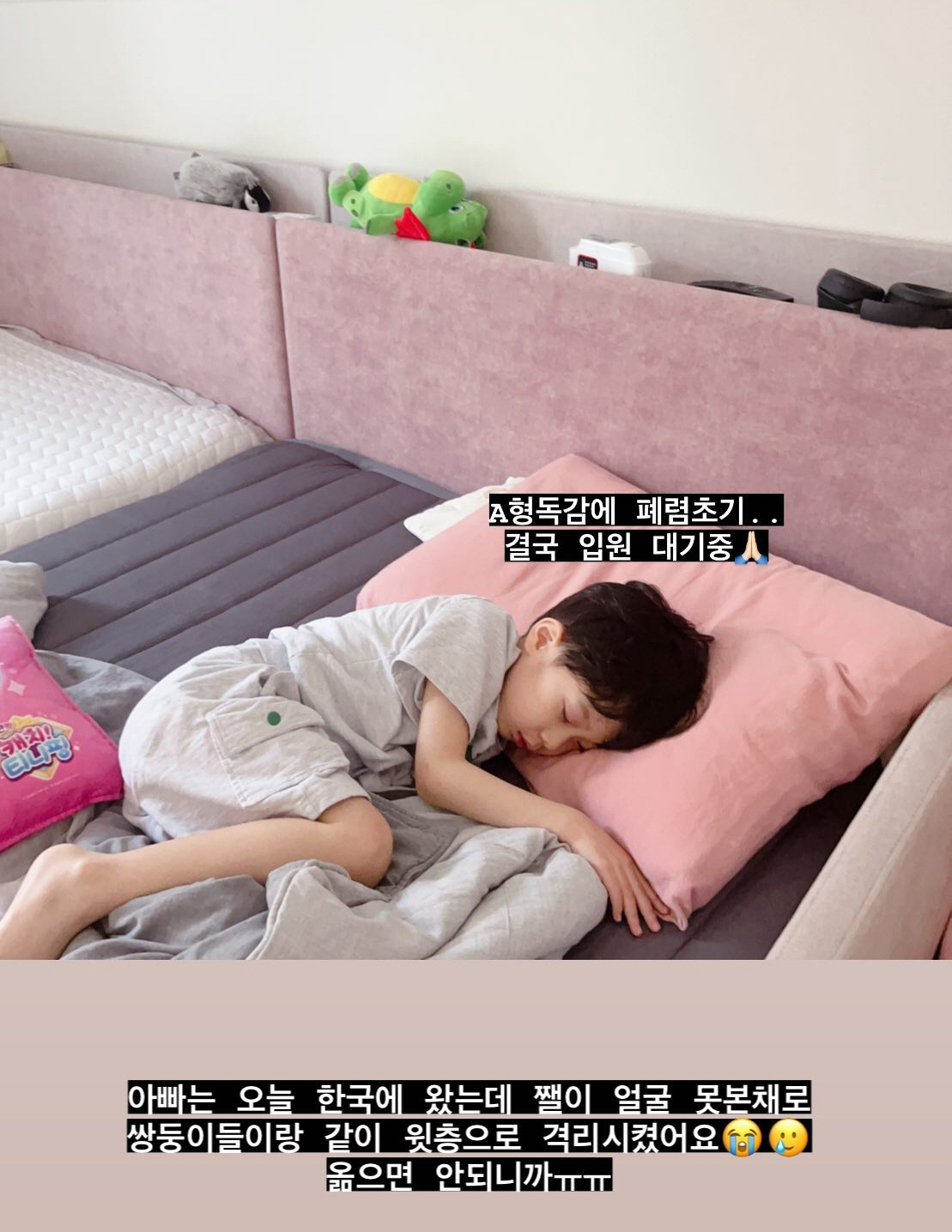 이어 "아빠는 오늘 한국에 왔는데 쨀이 얼굴 못 본 채로 쌍둥이들이랑 같이 위층으로 격리시켰어요. 옮으면 안 되니까"라고 밝혀 안타까움을 자아냈다.