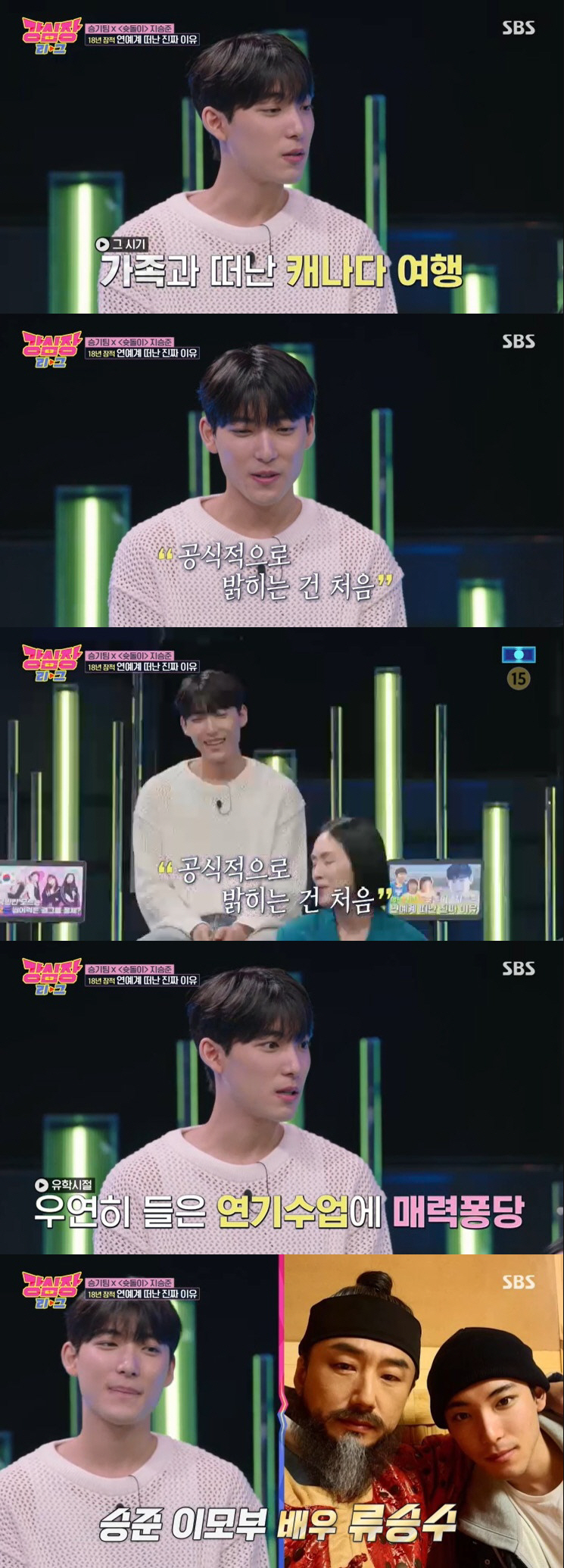 현재 캐나다에서 법학을 전공, 휴학한 지승준은 "공식적으로 말씀 드리는 건 여기가 처음인 거 같다. 내가 한국에 들어온 이유는 배우라는 꿈을 도전해보려고 왔다. 배우가 되고 싶어서보다는 연기가 재밌어서 시작했던 거 같다"고 고백해 많은 관심을 가졌다. 이에 MC 이승기는 "이모부도 배우이지 않나?"라며 거들었고 지승준은 "이모랑 결혼한 분이 류승수다"고 남다른 인맥을 과시했다.