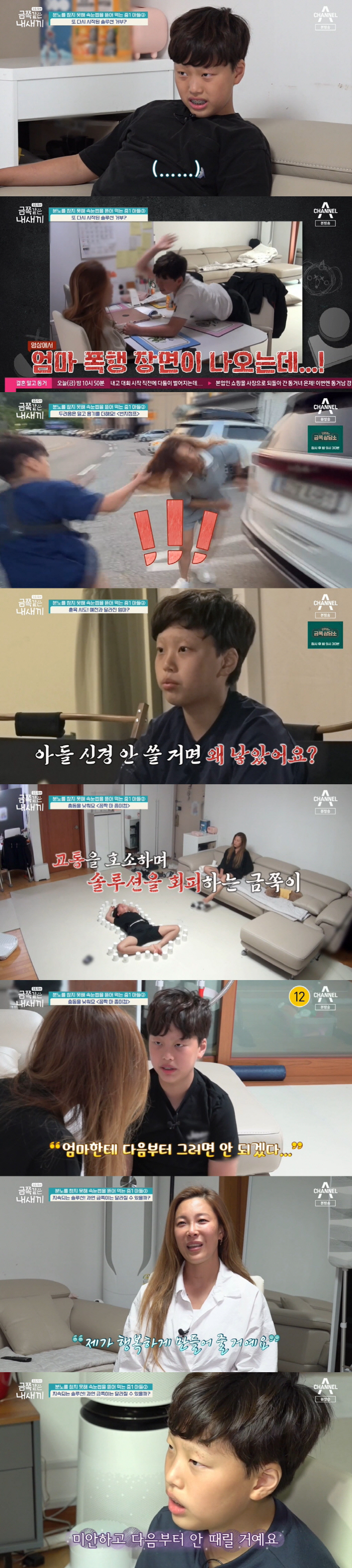 한편 분리 수면 솔루션을 강하게 거부하던 금쪽은 엄마의 수술한 다리를 걷어차고 때리는 등 난폭한 행동을 보였다. 결국 극심한 통증에 주저앉고 만 엄마에 패널들은 충격에 빠졌다. 엄마는 "자식이 부모 때리는 건 없어야 한다"고 했지만, 금쪽이는 "왜 나한테 맞으면서 따로 자야하냐"고 적반하장의 태도를 보여 모두를 충격에 빠트렸다.