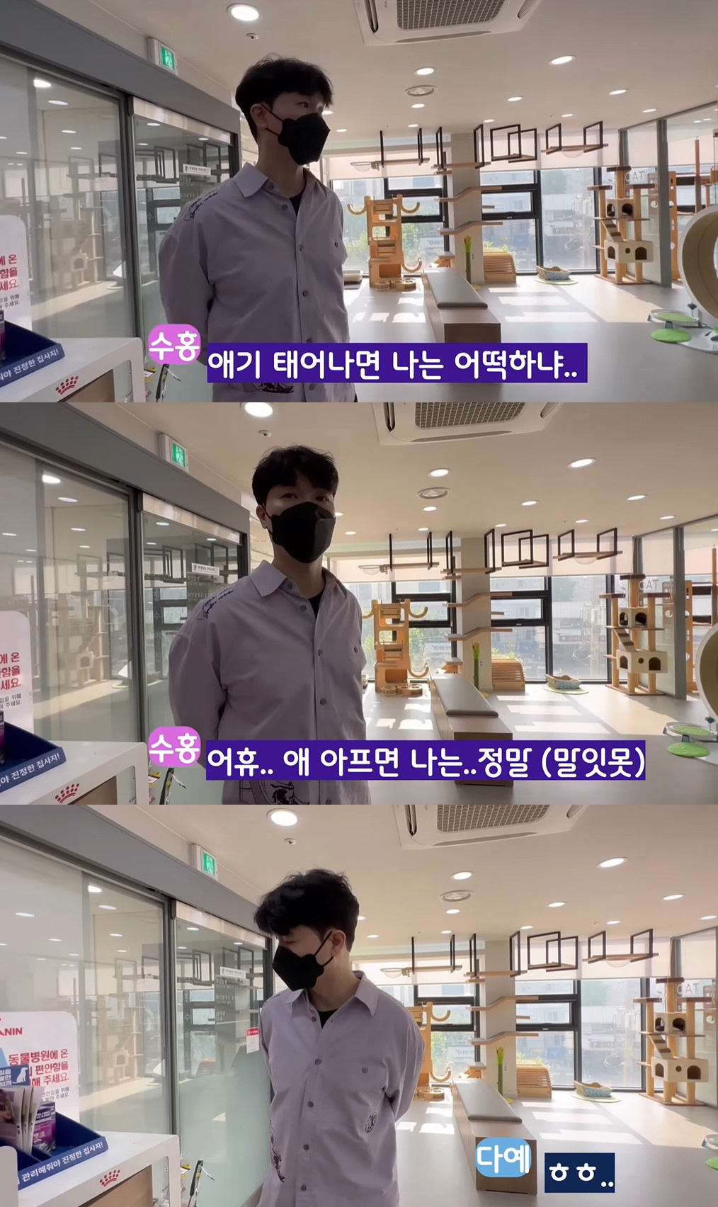박수홍은 전체적인 검사 결과 다행히 다홍이가 심각한 상태가 아니라는 말에 안도했다. 수의사는 "고양이가 장염 잘 걸린다"고 주사와 약을 처방, 박수홍은 "늘 감사하다"고 인사했다. 아내 김다예는 "아이고 잘했다"며 다홍이를 칭찬하며 쓰다듬었다.