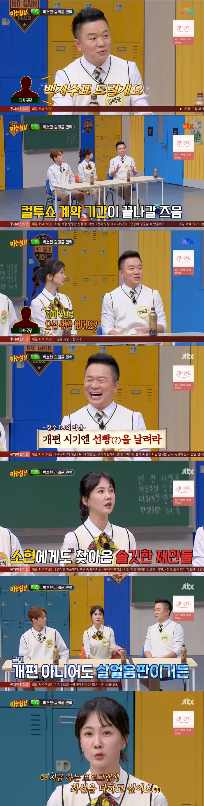 박소현은 "나도 얼마 전에 '다른 데서도 해보면 어떠냐. 왜 늘 퇴근 시간만 고집하느냐. 아이돌 프로그램 할 수 있을테니까 시간 대를 바꿔서 오면 어떠냐'는 제의를 받았다"고 밝혔다. 이어 "사실 여기가 개편 아니어도 살얼음판이다. 매일 생방송만 해도 부담이다. 그래서 '지금 프로그램에 최선을 다하겠다'고 했다"고 밝혔다.