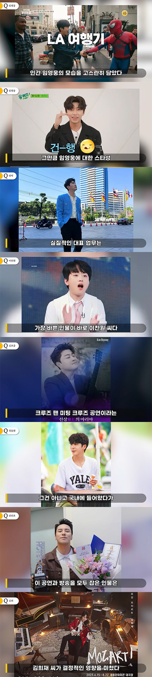 끝으로 김희재의 근황에 대해서는 "굉장히 뜻밖의 행보를 보이고 있다. 김희재는 뮤지컬 '모짜르트'에서 타이틀 롤로 캐스팅되서 공연 준비에 한창이다. 뮤지컬 자체가 팬덤이 굉장히 중요한 장르다. 왜냐하면 티켓파워로 바로 이어지기 때문이다. 근데 그걸 입증해냈다. 또 김희재의 팬덤이 점점 늘어나고 있다는 걸 포착했다. 지방공연을 최근에 했는데 무려 버스가 34대가 왔다고 한다. 버스 한대당 40명이 탈 수 있는데 1200명이 넘게 김희재를 보러 온 거다. 놀라운 일이다"라고 이야기했다.