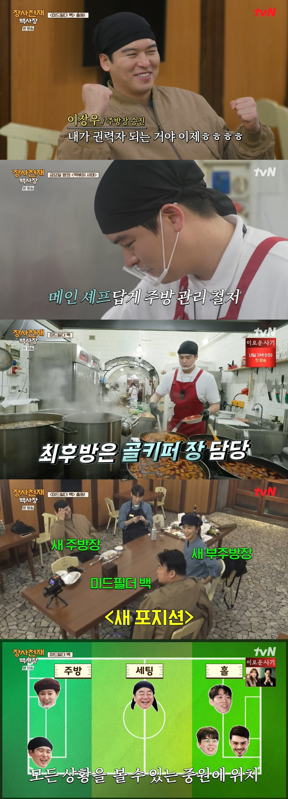 [스포츠조선닷컴 이게은기자] 배우 이장우가 주방장으로 승격되고 백종원이 중간 다리 역할을 하며 영업이 더욱 순조롭게 진행됐다.