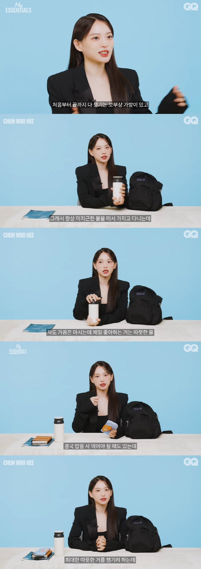 텀블러를 꺼낸 천우희는 "제가 찬물을 잘 못 마신다. 항상 미지근한 물을 떠서 갖고 다닌다. 이거 진짜 오래 썼다. 거의 매일 쓰고 있는 거 같다"며 "커피는 못 마시고 차도 가끔 마시는데 제일 좋아하는 건 따뜻한 물"이라 밝혔다.
