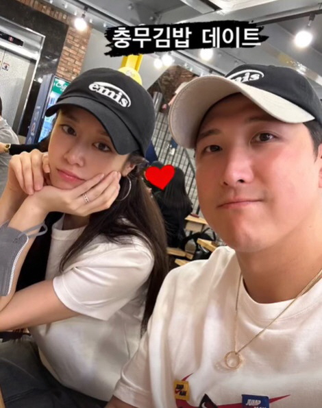 공개된 사진 속 황재균과 지연은 충무김밥을 먹기 위해 식당을 찾은 모습. 흰티에 캡모자를 쓴 커플룩을 선보인 두 사람은 알콩달콩한 신혼부부의 모습으로 달달함을 자아낸다.