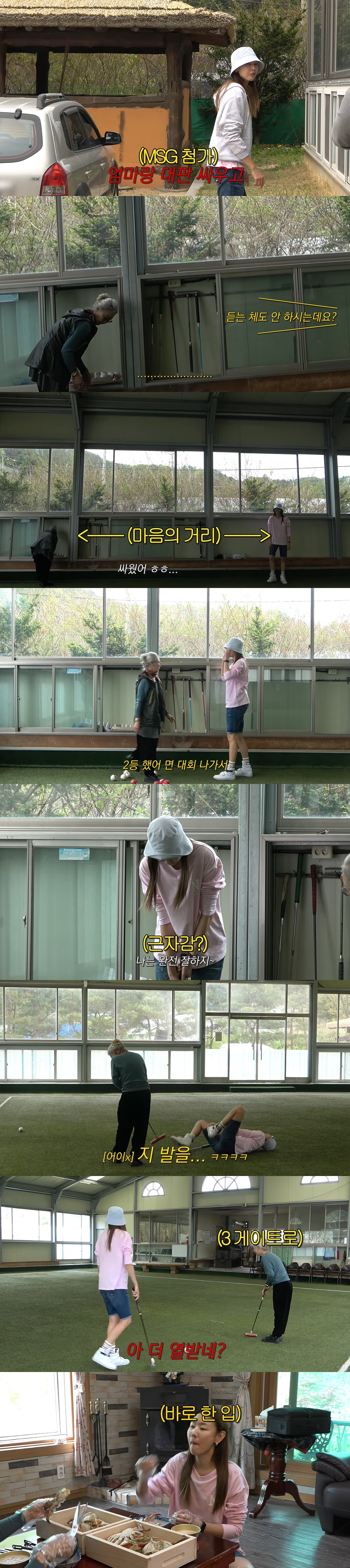 어렵사리 게이트볼장에 도착한 한혜진은 "오다가 사고나서 좀 늦었다. 엄마랑 대판 싸우고"라고 해 제작진을 당황하게 했다. 처음 게이트볼장을 찾은 한혜진은 "축구하고 싶다. 인조 잔디 축구장이랑 똑같다"고 했지만, 들은 체도 안 하시는 어머니. 이에 한혜진은 "싸웠다"며 웃었다.