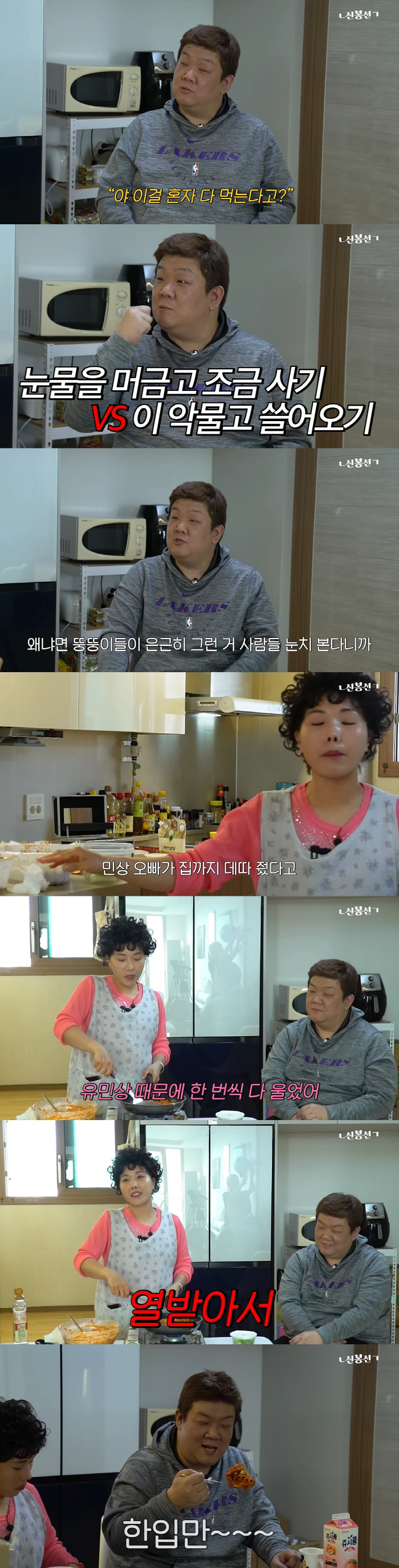 신봉선은 실비 김치 볶음밥, 실비 김치전을 준비, 그때 "옛날에 유민상 씨가 '개그콘서트' 녹화 때 밥을 안 먹더라. 편의점도 안 가더라"고 물었다.