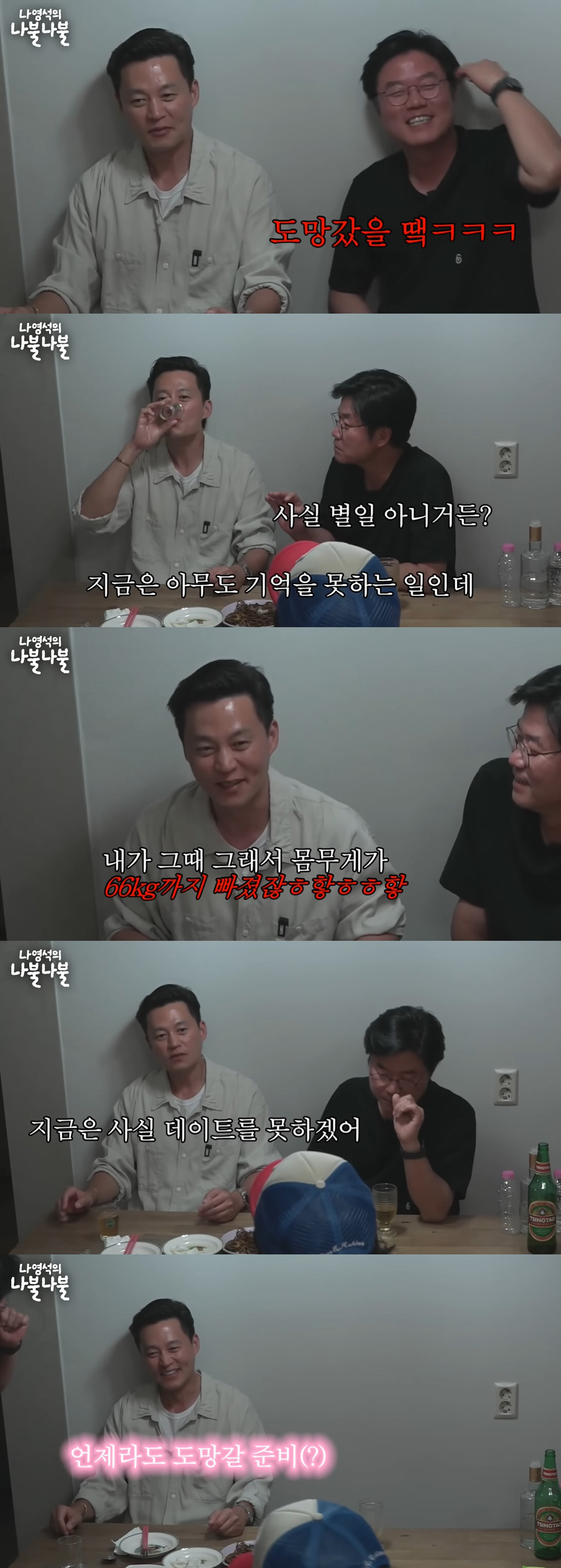 이어 "동네 헬스클럽에 DVD 플레이어가 있었다. DVD를 보면서 유산소를 세 시간씩했다. 다음편이 궁금해서 계속 운동했다. 그때 몸무게가 66kg까지 빠졌다"라고 덧붙였다. 나영석은 "걱정이 많은 상태로 '어떻게 살아야 하나' 이런 고민이 있었을 텐데 영화 보며 운동을 했네"라며 웃음을 터트렸다. 이서진은 "살도 빼고 몸도 좋아졌다. 30대 후반이었다. 내 인생 전체에서 가장 큰 위기였다. 항상 이민 갈 준비를 하게 됐다. 급하게 가더라도 기반을 빨리 찾을 수 있도록"이라고 털어놨다.