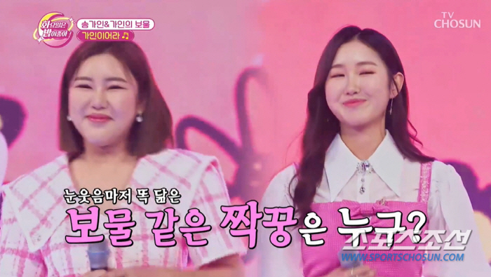 조은서는 현재 배우로 활동 중. 송가인의 애교넘치는 모습과 반달모양 눈웃음까지 똑닭은 조은서는 "언제가(송가인이) 제일 최고냐"는 질문에 "뭐니 뭐니 해도 머니?"라는 재치넘치는 대답으로 끼를 과시했다. 이정혁 기자 jjangga@sportschosun.com