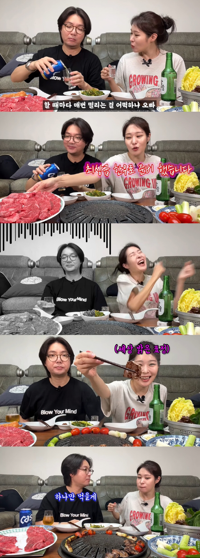 김태현은 "한 판으로 승부를 내야지 삼세판 이런 거 없다. 바꾸자, 한 점만 줘라 이런 거 없다"고 단호하게 말했지만 김태현이 가위바위보에 졌다. 결국 김태현은 끝까지 대패삼겹살을 먹었고 미자는 "이게 무슨 호사냐. 소고기가 너무 많으니까 쌈을 싼다. 소고기는 원래 쌈 싸는 게 아니"라며 한우 먹방을 즐겼다.