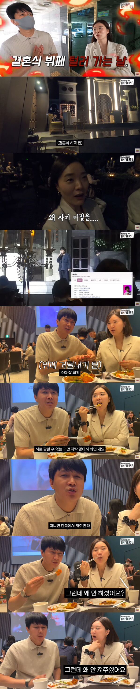 예식이 끝나자 두 사람은 본격적으로 뷔페를 먹으러 향했다. 김승현은 "기본 세 접시는 먹을거다. 처음에는 비싼 음식, 회를 먼저 먹어야한다. 김밥 먹고 그러면 안된다"고 자신만의 뷔페 노하우를 전했다.