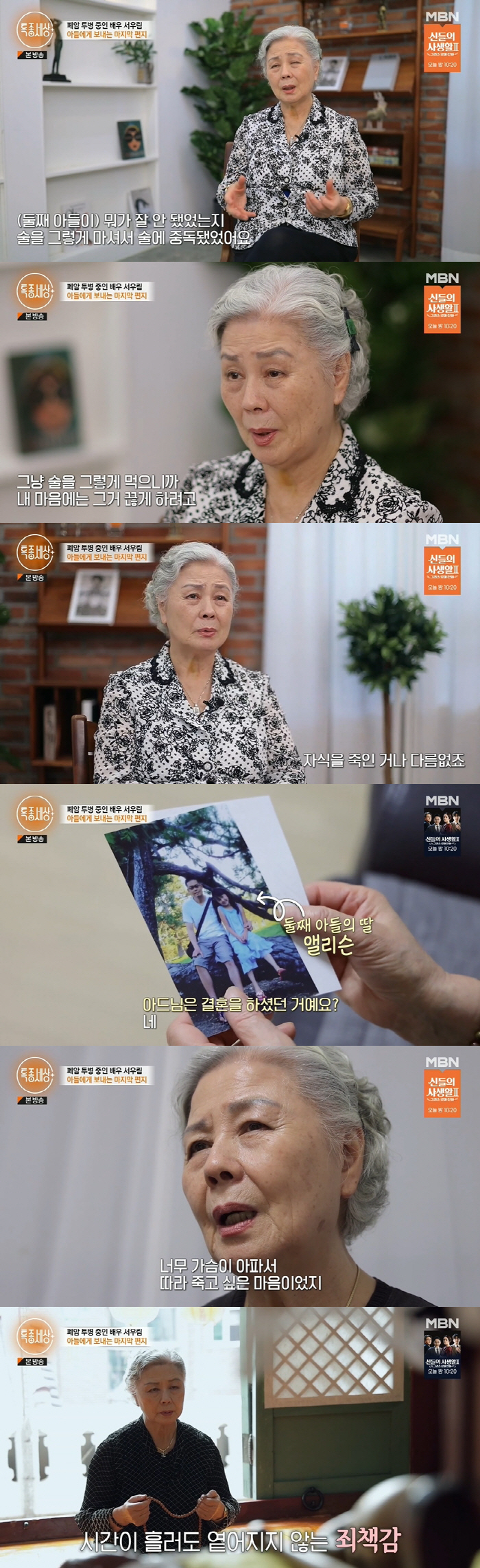8일 방송된 MBN '특종세상'에는 60년 차 배우 서우림이 출연해 아들을 먼저 떠나보낸 가슴 아픈 사연을 털어놓았다.