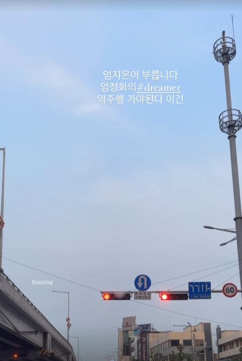 공개된 영상 속에는 차 안에서 엄정화의 곡 'dreamer'를 열창하는 엄지온의 모습이 담겼다. 엄지온은 신호를 기다리며 고모의 곡을 열심히 따라 부르는 모습. 해당 곡은 2016년 엄정화가 8년 만에 가수로 컴백한 곡이다.