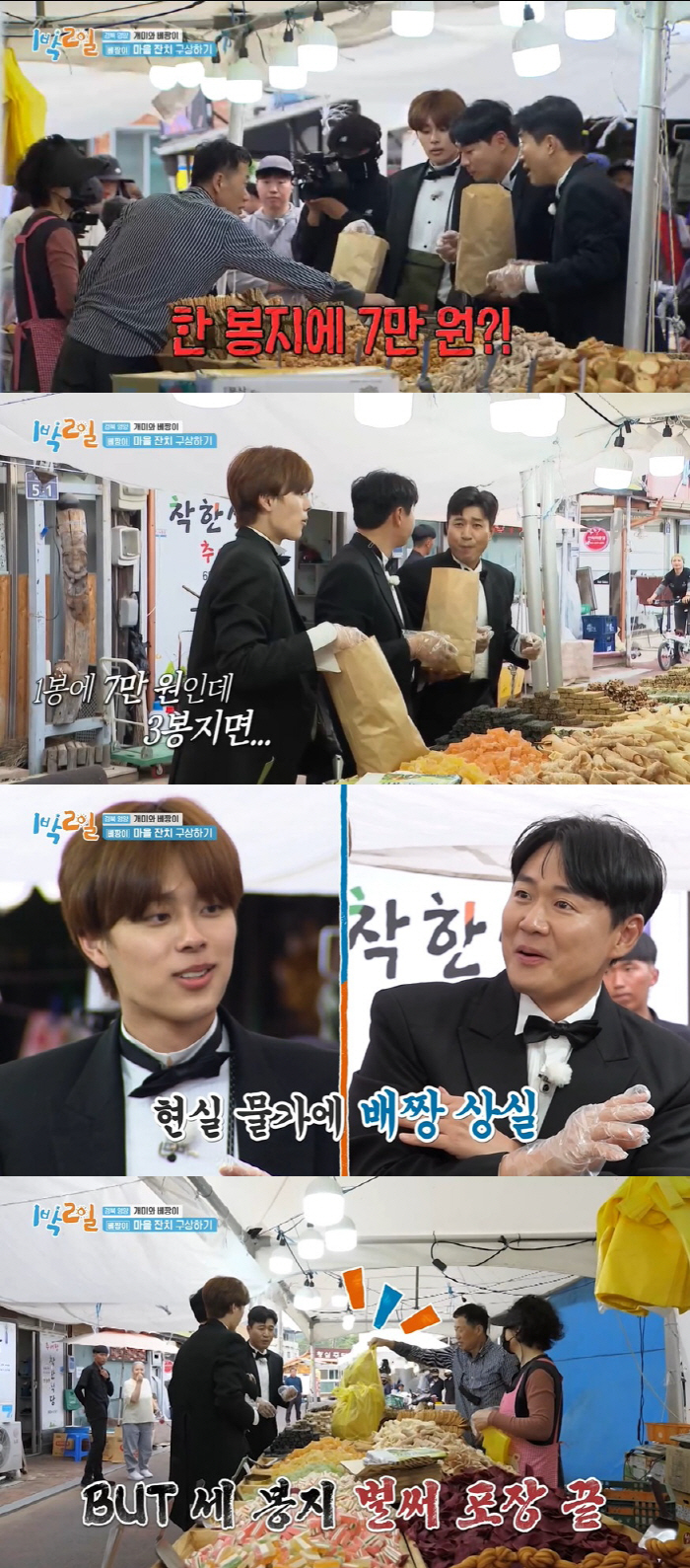 지난 4일 방송된 '1박2일 시즌4'에서는 연정훈, 김종민, 유선호가 영양군 재래시장에서 옛날 과자를 구입하는 모습이 담겼다. 멤버들은 원하는 과자를 세 봉지에 골라 담았는데, 가격이 무려 21만 원이 나와 당황했다. 결국 멤버들은 14만 원에 과자를 구매했고, 방송이 나온 후 부르는 게 값인 전통시장 바가지 논란이 불거져 파장은 더욱 커졌다.