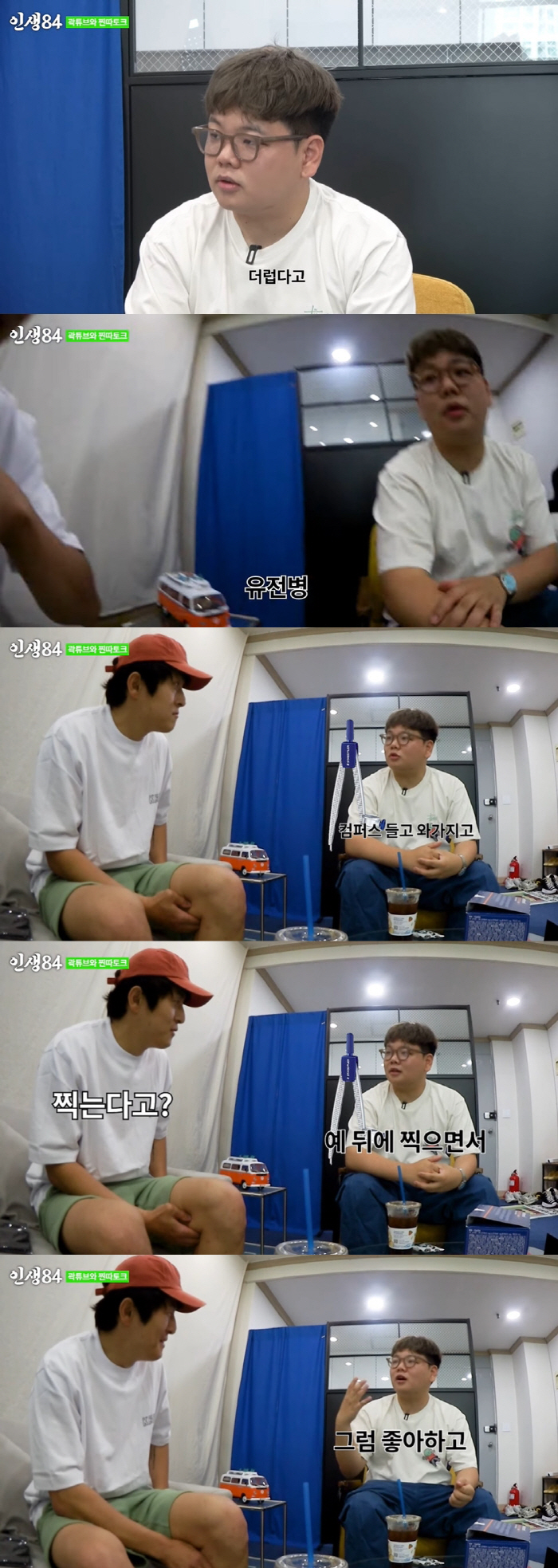 이를 들은 기안84가 웃자, 제작진들은 "왜 웃냐"며 당황했다. 그러자 곽튜브는 "웃는 걸 이상하게 생각하시면 안 되는 게 맞아본 애들은 재미있다"고 설명했다.