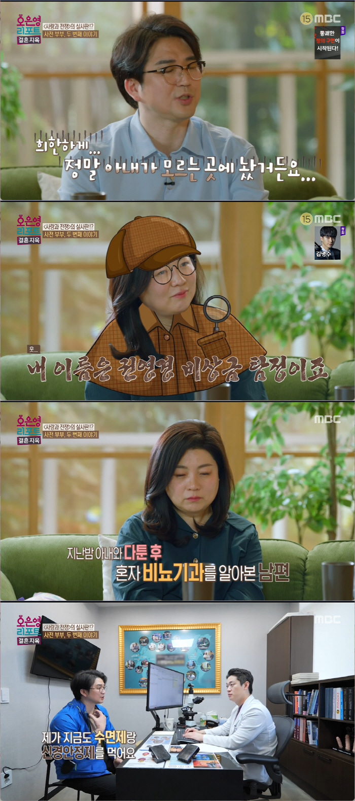 홍승범은 "'당신 사고난 뒤에 약 먹어서 그러는 거 아냐?' 했는데 그 이후부터 아내만 보면 '또 못하면 어떡하지?' 싶어서 무서웠다. 그러다 각방을 쓰게 됐고 자연스럽게 멀어졌다"라 고백했다. 결혼 전 8년 간 권영경을 짝사랑 했던 홍승범이었지만 너무도 싶어진 갈등.