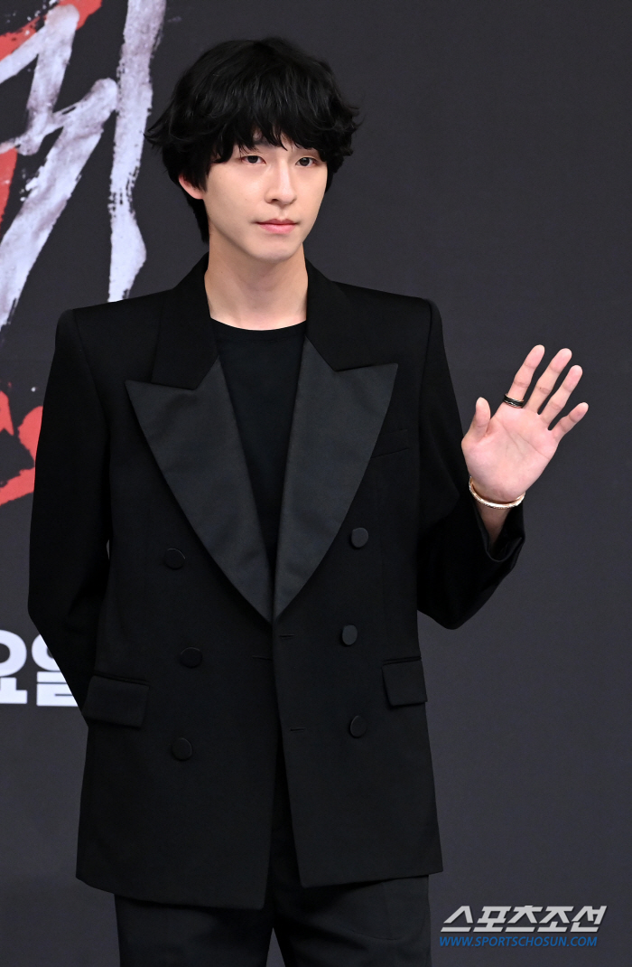 SBS 새 금토드라마 '악귀'의 제작발표회가 23일 목동 SBS에서 열렸다. '악귀'는 악귀에 씐 가난한 청춘 산영(김태리)이 악귀를 보는 민속학자 해상(오정세)과 의문의 죽음을 파헤치는 이야기. 홍경이 포토타임을 갖고 있다. 허상욱 기자 wook@sportschosun.com/2023.06.23/
