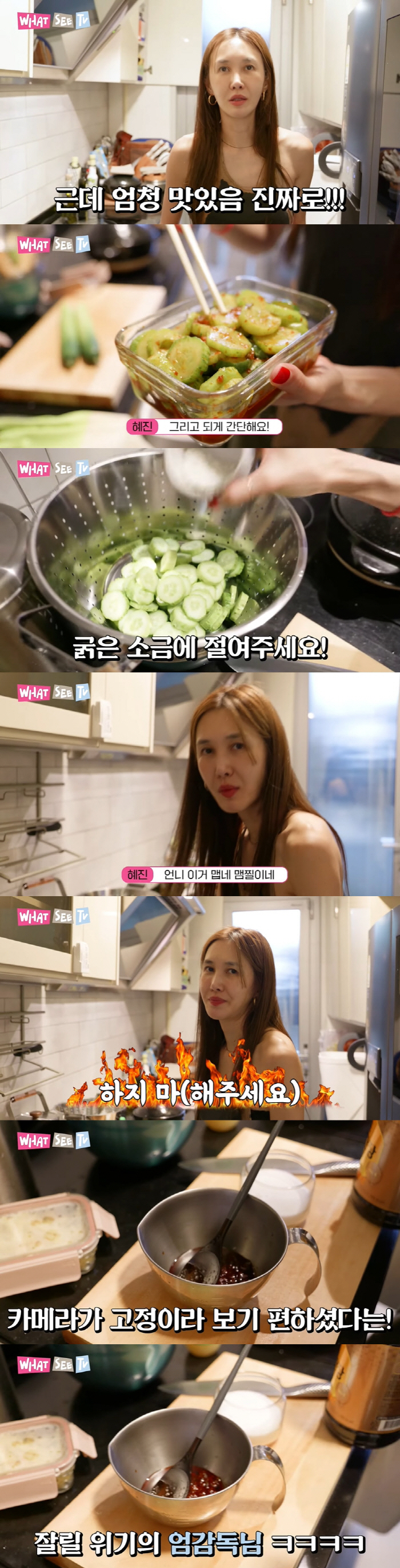 29일 유튜브 채널 '윤혜진의 What see TV'에는 '어후 여름에 이거 완전 딱!! 색다른 별미! 초간단 매콤 새콤 오이절임! 강추!!'라는 제목의 영상이 게재됐다.