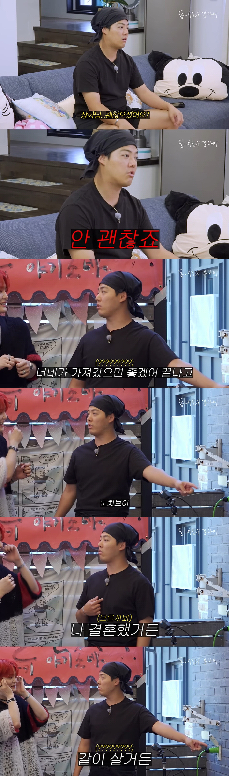 강남은 "우리 집에 철판이 있었다. 고장났다. 버리고 기계를 샀다"면서 "너무 크니까 끝나고 너희가 가져갔으면 좋겠다. 여기 있으면 눈치 보인다. 나 결혼해서 같이 산다"고 해 웃음을 안겼다.