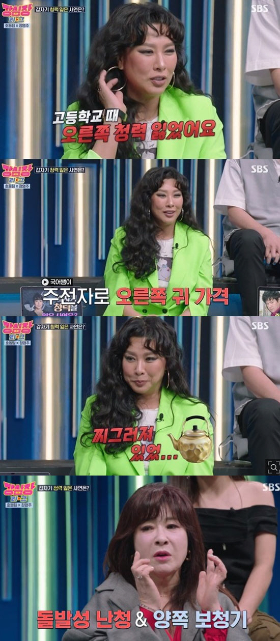4일 방송된 SBS '강심장리그'에서는 정영주가 청력을 잃은 과정을 처음으로 공개해 놀라움을 안겼다.