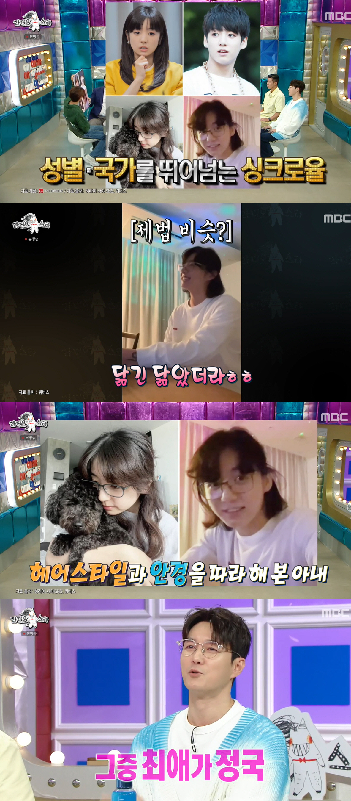 이어 "아내가 그 방송을 라이브로 보고 잠을 못잤다. 아내가 BTS 팬인데 그중 최애가 정국이다"라며 "라이브를 보고 정국을 따라하고 싶다고 해서 찍은 사진도 있다"고 말했다.
