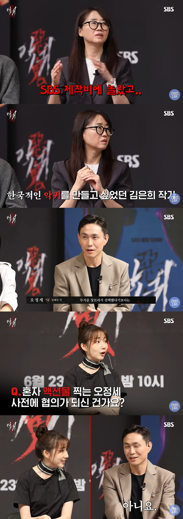 실제로 겁이 많다는 김은희 작가는 '악귀'를 선택한 이유 "오컬트나 전설의 고향 같은 걸 좋아했다. 외국 악마들이 많이 나오지 않냐. 그런 악귀 말고 한국적인 악귀가 나오면 어떨까 싶었다"고 밝혔다. 오정세 역시 김은희 작가 만큼 겁이 많다고. 그럼에도 오컬트 장르를 선택한 이유에 대해 오정세는 "무서운 장르라서 선택했기 보다는 김은희 작가님이 쓰셨고 글에 대한 신뢰, 배우에 대한 신뢰가 컸다"고 밝혔다.