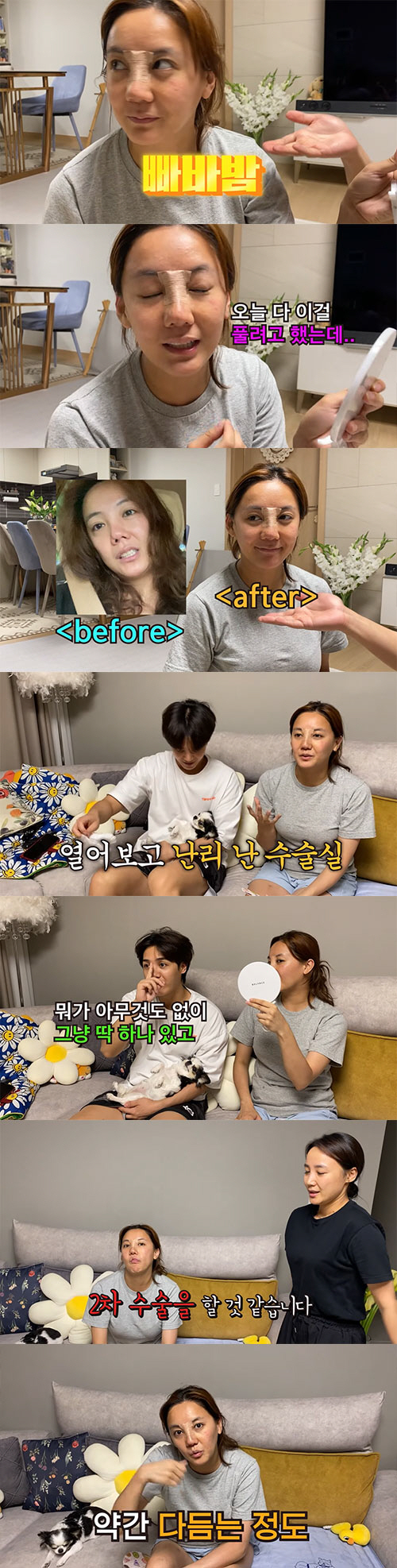 고은아는 "지금 엉덩이 진피와 귀 연골을 써서 수술을 했는데 코에 아무것도 없다보니까 쌓고 쌓고 했는데 이게 어떻게 흡수가 되느냐에 따라서 2차 수술도 해야 할 것 같다. 근데 부기 빠지는 거 보고 어떻게 될지 결정될 것 같다"라고 이야기했다.