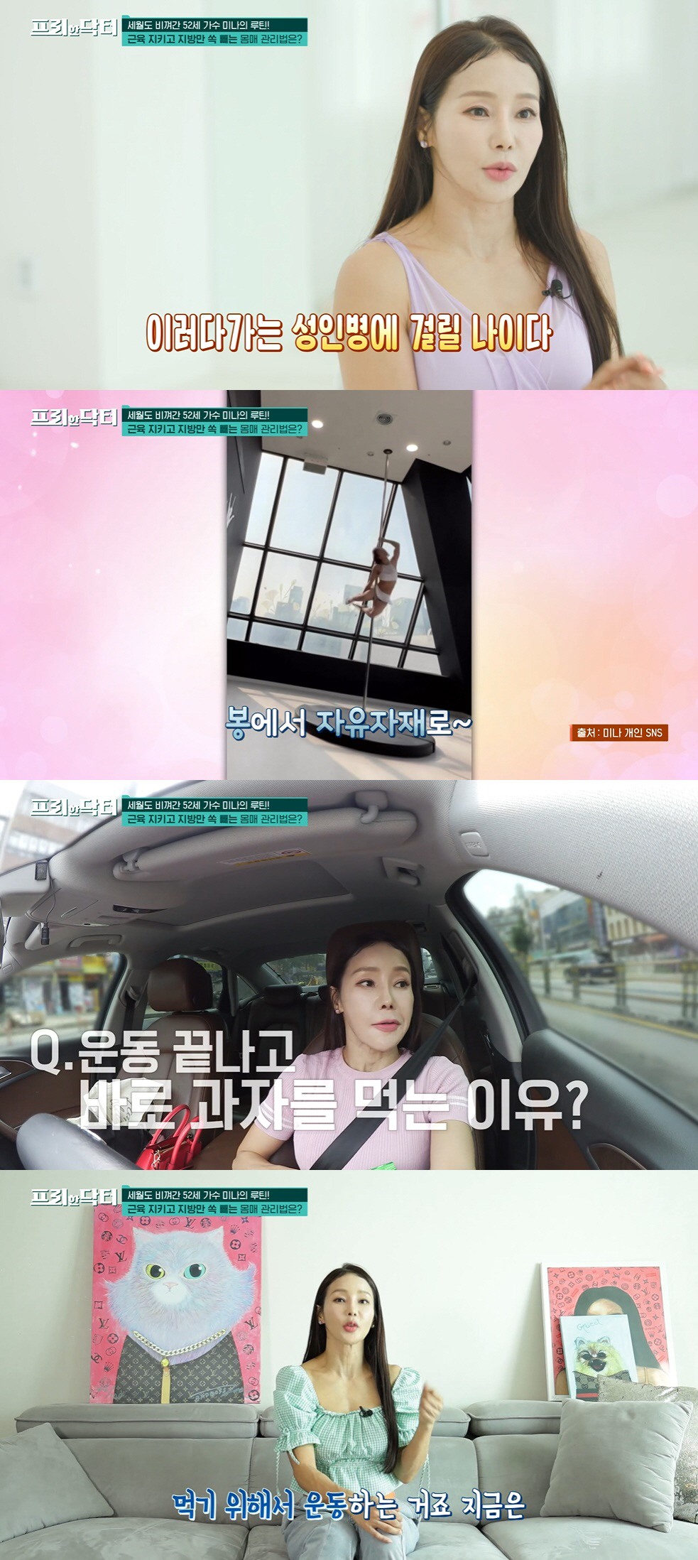 패널들은 폴댄스를 하는 미나의 모습을 보고 "20대로 봐도 믿을 것 같다"라며 감탄했다. 선명한 복근과 탄탄한 몸매가 시선을 사로잡기 충분했다. 미나는 고난도 동작까지 완벽하게 소화했다.