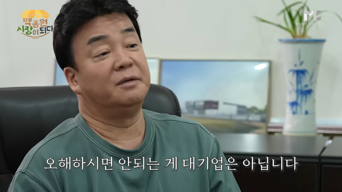 이 영상에서 제작진이 '혼자 너무 많은 일을 하시는 것 같다'고 묻자 백종원은 "많은 분들이 오해하는 게, 내가 다른 기업인보다 방송을 많이 하기는 하지만 날 큰 회사 대표라고 생각한다"고 운을 뗐다.