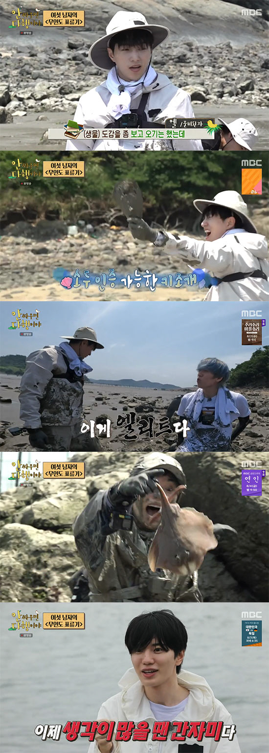 또한 갯벌에서 지쳐있던 가운데, 막내 성종이 물 속에서 간자미를 들어 올려 멤버들을 깜짝 놀라게 했다. 그는 "생각이 많을 땐 레몬사탕을 외쳤는데, 이제 생각이 많을 슌 '간자미'다"라고 들뜬 소감을 밝혔다.