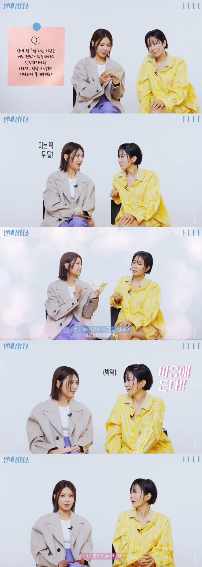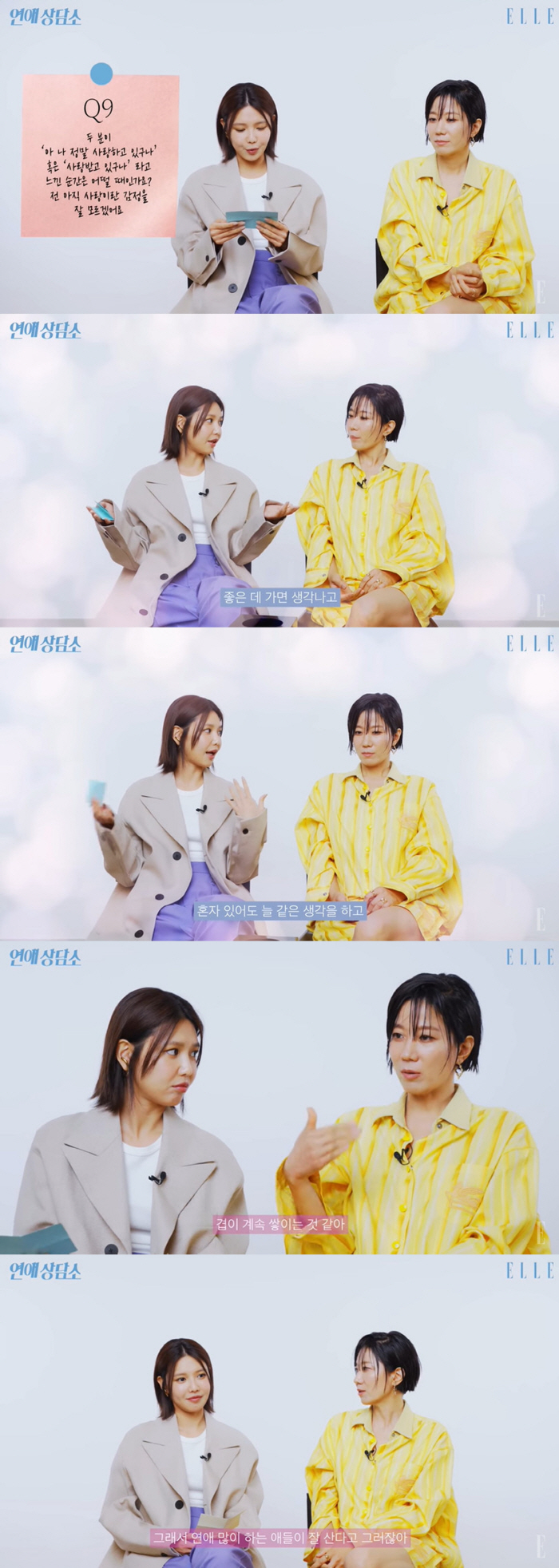 엘르 공식 유튜브 채널에는 8일 '전혜진 최수영이 '나 사랑하고 있구나' 느낀 순간은? ♥ MBTI 'T'와 'F'의 상극 연애 상담! 남남 연애상담소'라는 제목의 영상이 게재됐다.