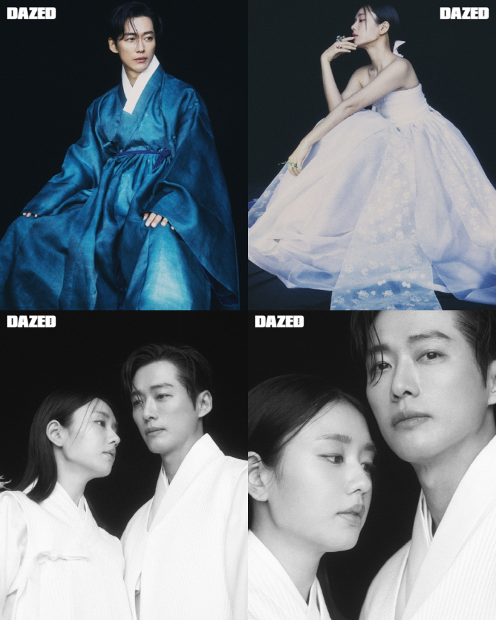 이에 6일 '연인' 남궁민, 안은진의 데이즈드 한복 커플 화보 B컷들이 추가로 공개됐다. 푸른 한복을 멋들어지게 소화하며 극강 비주얼을 보여준 남궁민, 가녀린 어깨를 고스란히 드러내 성숙한 여인의 향기를 발산한 안은진, 흑백을 뚫고 나오는 케미를 보여준 남궁민 안은진의 커플샷까지. 그야말로 "역시 장채 커플"이라는 감탄이 절로 나온다.