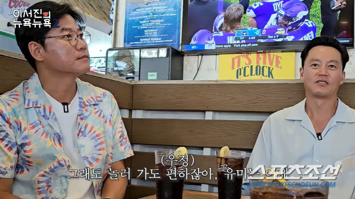 이어 방송에는 이와 관련한 이서진의 해명도 담겼다. 이서진은 해당 사진에 대해 "그때 유명한 사람들이 엄청 왔었다. 유미는 밴드 '키스'는 모르더라. 제가 억지로 (경기에)끌고 간 게 아니다. 정유미 씨가 가고 싶어해서 데리고 간 거다. 유미가 남의 이야기를 집중해서 듣지 않는다"고 너스레를 떨었다.
