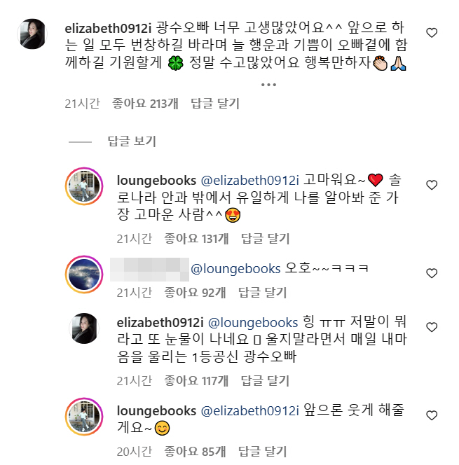 이에 16기 옥순은 "광수오빠 너무 고생많았어요^^ 앞으로 하는 일 모두 번창하길 바라며 늘 행운과 기쁨이 오빠곁에 함께하길 기원할게 정말 수고많았어요 행복만하자"라는 댓글을 달았고 광수 역시 "솔로 나라에서 유일하게 나를 알아봐 준 가장 고마운 사람"이라고 대댓글을 달았다.