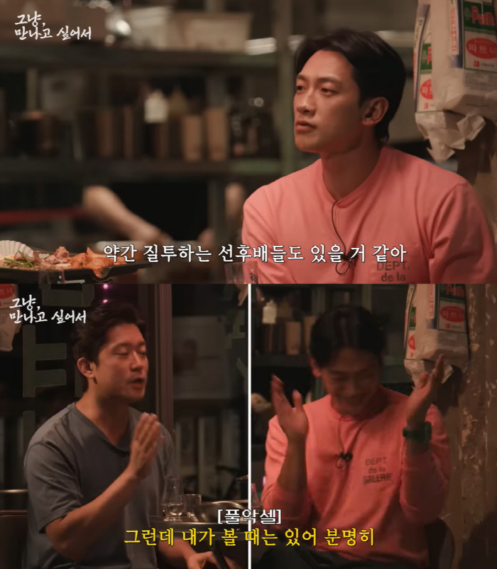 얼큰하게 술이 들어가자 솔직한 이야기들이 오갔다. 비는 "난 회사 생활 한번도 안해봤다. 학교 등교가 너무 힘들어서 나는 절대 회사원 안하겠다고 다짐했다"고 운을 ?I다.