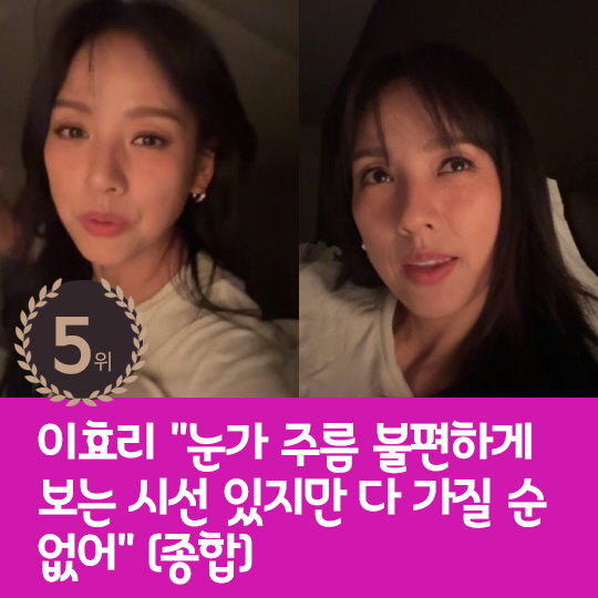 5위 : 이효리 "눈가 주름 불편하게 보는 시선 있지만 다 가질 순 없어"