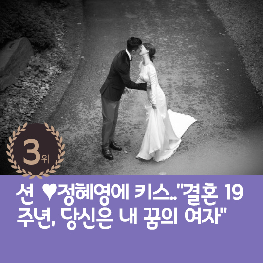 3위 : 션 ♥정혜영에 키스.."결혼 19주년, 당신은 내 꿈의 여자"
