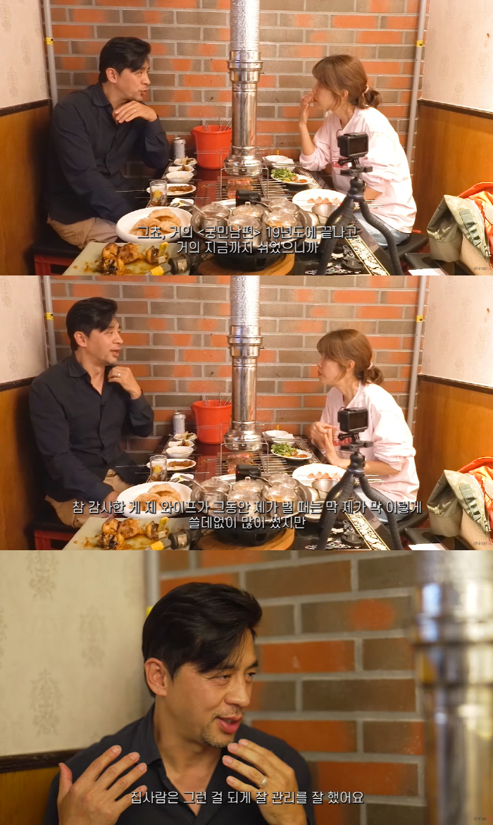 "사모님이 복덩이다. 결혼 잘하셨다. 연상이지 않나"는 말에 권오중은 "천사다"라며 "지금도 연상 같은 느낌이 아직도 안 든다. 외모로도 연상 느낌이 없다. 좋다"고 애정을 드러냈다.