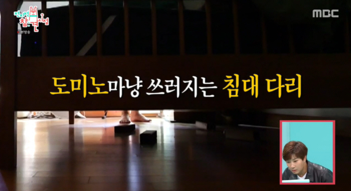 풍자는 일어나자마자 반려묘를 찾았고, 그때 침대 밑에 있던 반려견을 찾던 중 "침대 부서졌다"고 해 모두를 놀라게 했다. 풍자는 "산 지 이틀 된 침대였다"며 침대 수리에 들어갔지만 이후 도미노 마냥 침대 다리가 쓰러져 웃음을 안겼다.