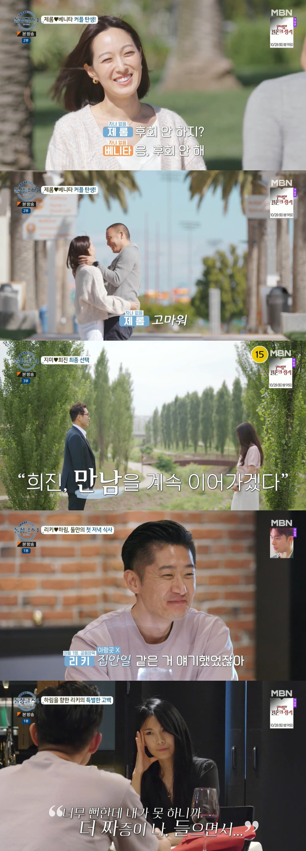 [스포츠조선닷컴 김준석 기자] MBN '돌싱글즈4'의 리키♥하림, 제롬♥베니타, 지미♥희진 총 세 커플이 모두 '최종 선택'에서 서로의 마음을 다시 한번 확인하며 '해피엔딩'을 맞았다.