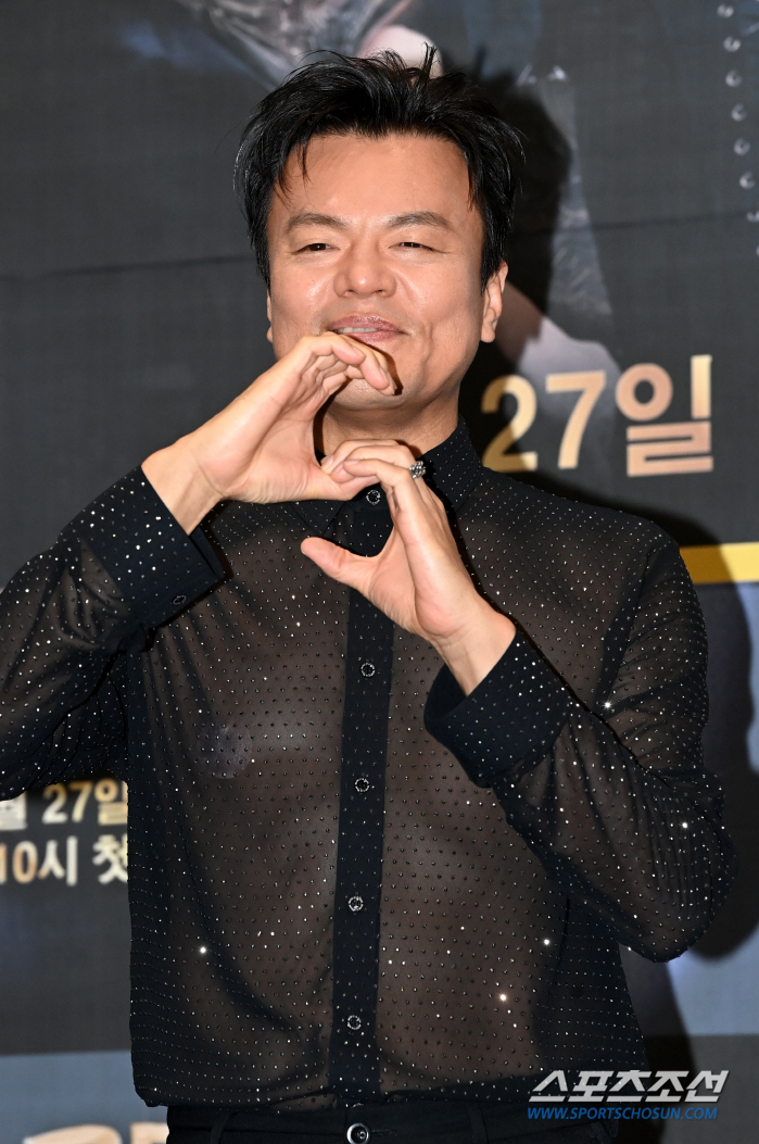 26일 KBS 웨딩홀에서 열린 KBS2 예능 프로그램 '골든걸스'의 제작발표회에서 박진영이 포즈를 취하고 있다. 여의도=허상욱 기자wook@sportschosun.com/2023.10.26/
